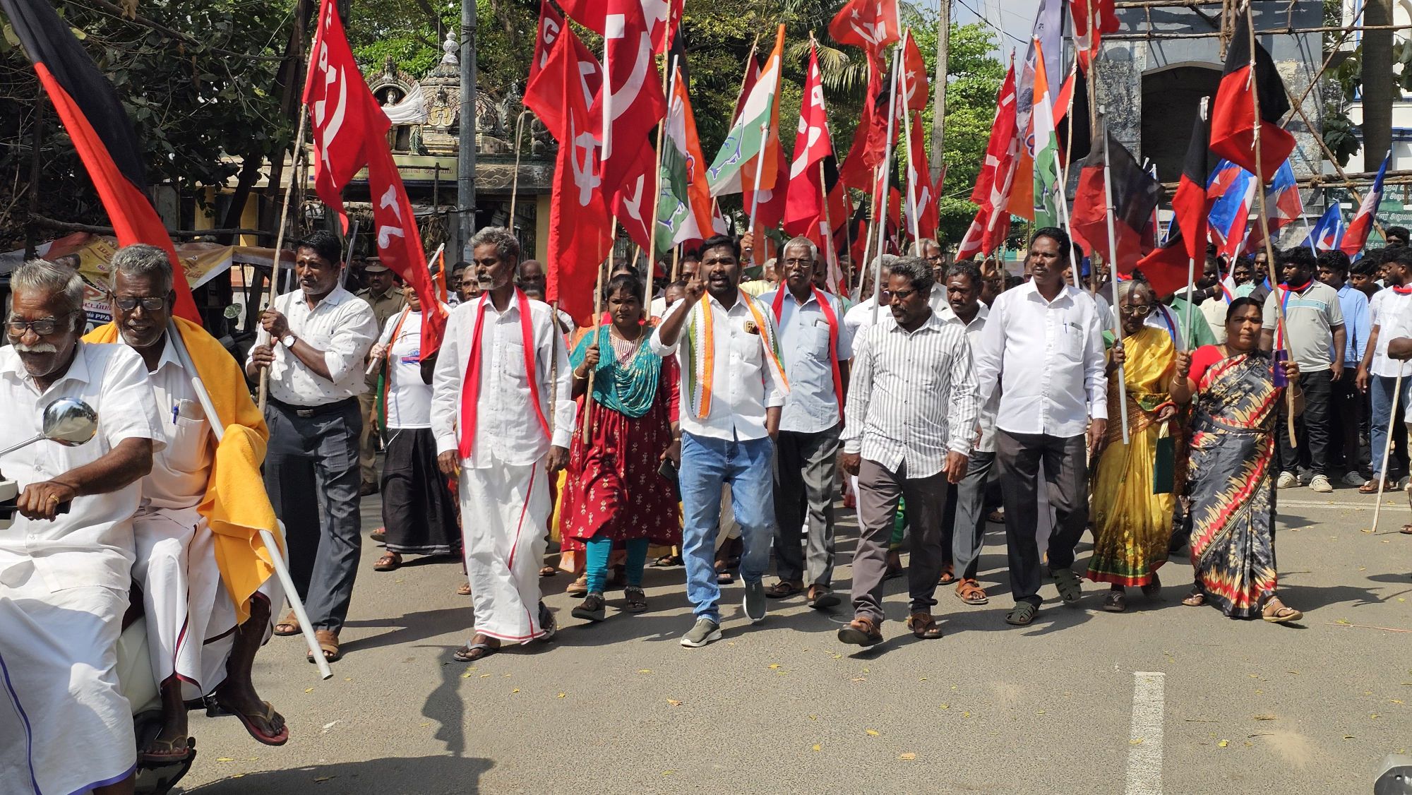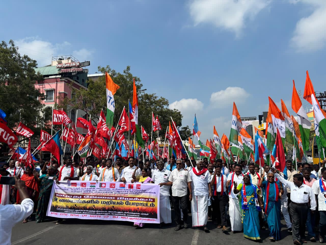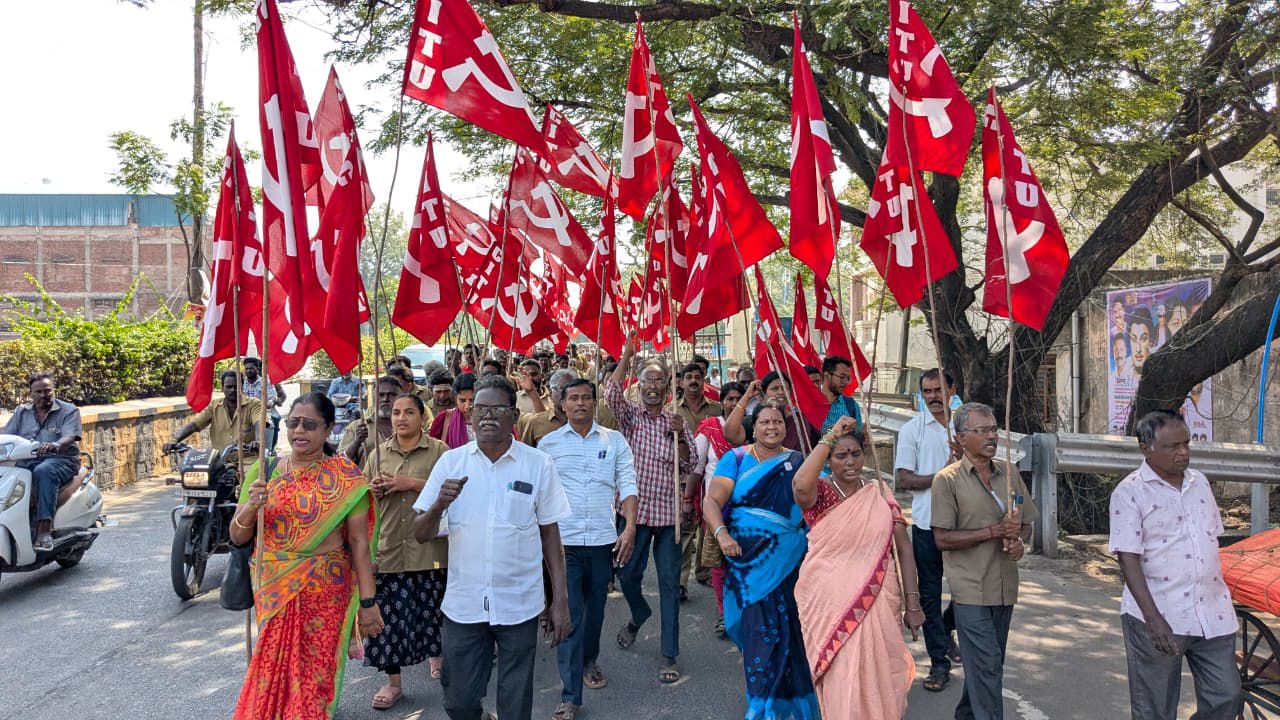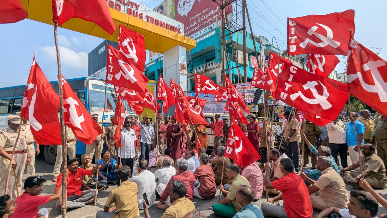 - சிஐடியு (CITU) மாநிலச் செயலாளர் சீனுவாசன் தலைமை தாங்கினார்.